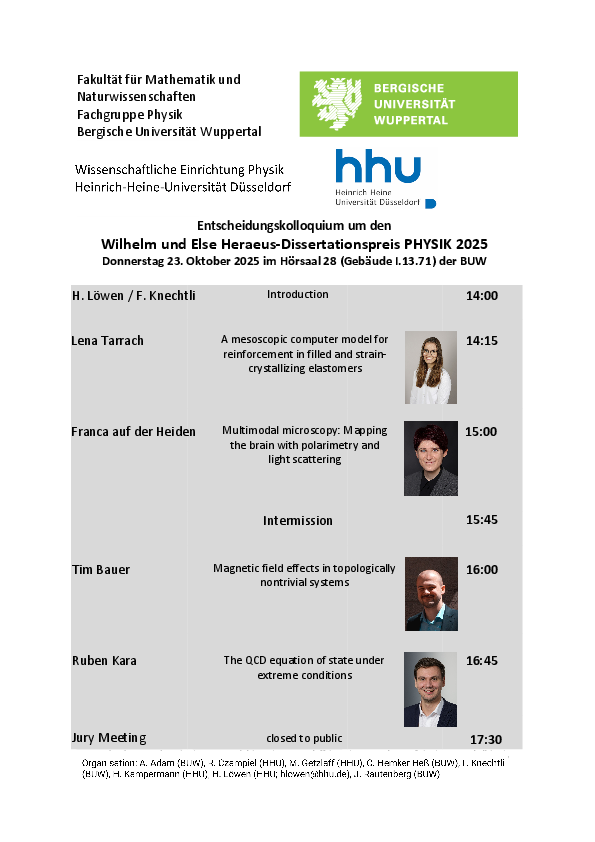 Am 23. Oktober 2025 findet das Entscheidungskolloquium des WEH-Preises an der Bergischen Universität Wuppertal statt. Ab 14 Uhr erwarten uns in Hörsaal 28 (Gebäude I.13.71) vier spannende Vorträgen der diesjährigen besten Bewerber*innen.